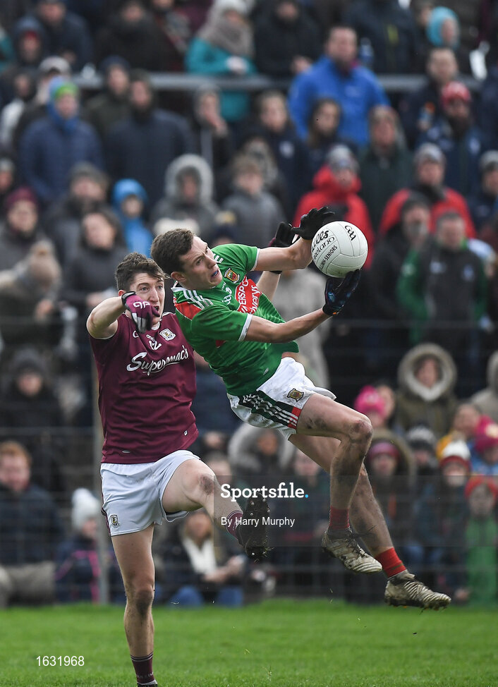 13 January 2019; Fionn McDonagh of Mayo in action against Johnny Heaney of Galway during the Connacht FBD League semi-final match between Galway and Mayo at Tuam Stadium in Galway. Photo by Harry Murphy/Sportsfile