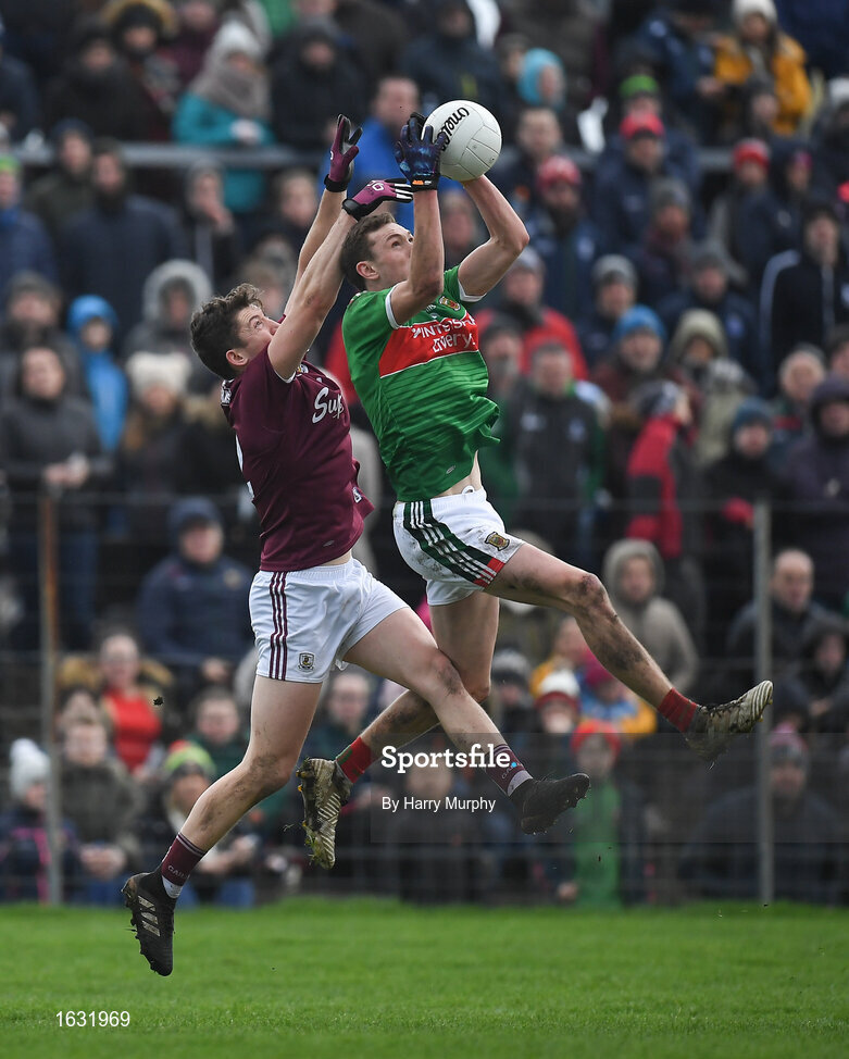 13 January 2019; Fionn McDonagh of Mayo in action against Johnny Heaney of Galway during the Connacht FBD League semi-final match between Galway and Mayo at Tuam Stadium in Galway. Photo by Harry Murphy/Sportsfile