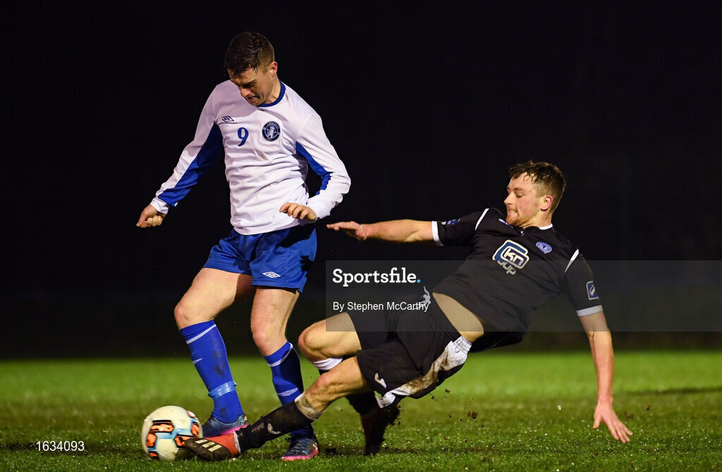 19 January 2019; Gerard Barry of Limerick and Caolan McAleer of Finn Harps during a pre-season friendly match between Finn Harps and Limerick at the AUL Complex in Clonshaugh, Dublin. Photo by Stephen McCarthy/Sportsfile