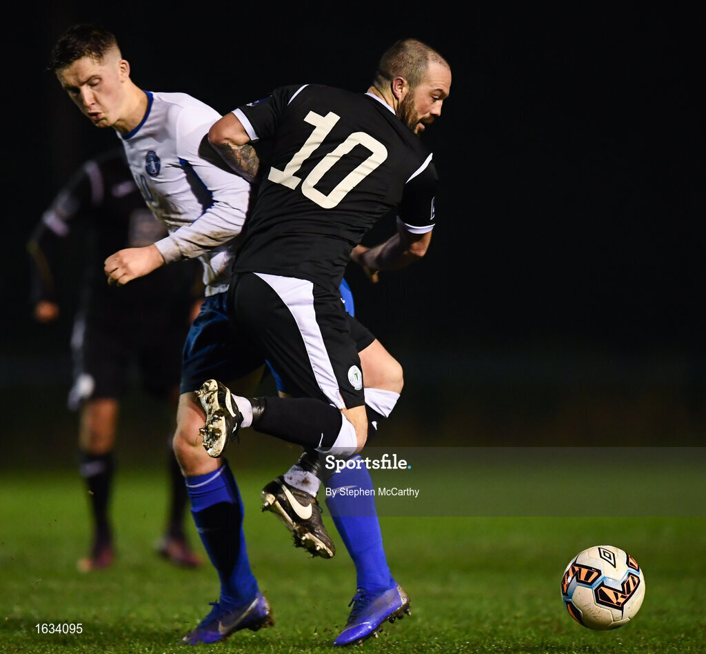 19 January 2019; Raffaele Cretaro of Finn Harps and Seán McSweeney of Limerick during a pre-season friendly match between Finn Harps and Limerick at the AUL Complex in Clonshaugh, Dublin. Photo by Stephen McCarthy/Sportsfile