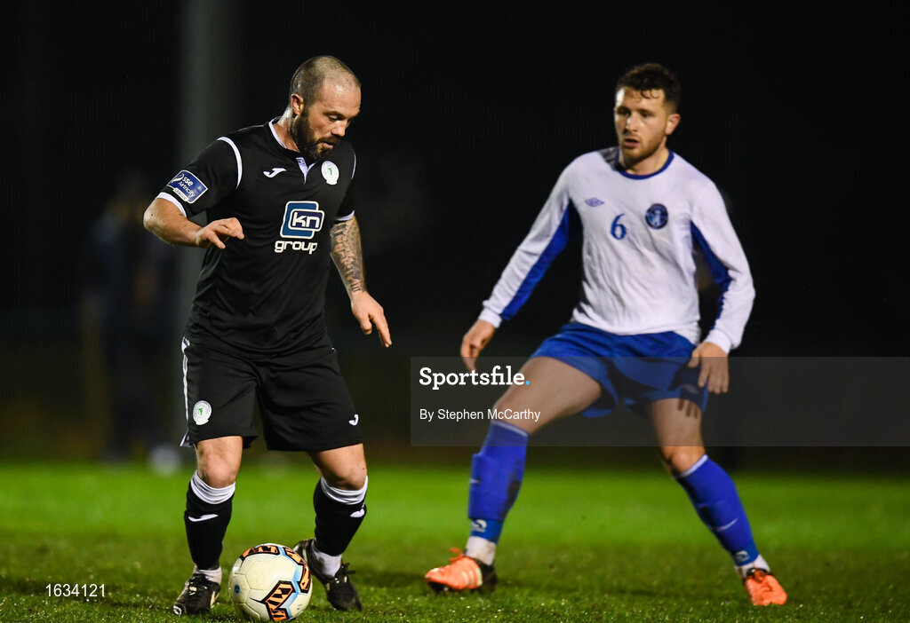 19 January 2019; Raffaele Cretaro of Finn Harps and Jason Hughes of Limerick during a pre-season friendly match between Finn Harps and Limerick at the AUL Complex in Clonshaugh, Dublin. Photo by Stephen McCarthy/Sportsfile