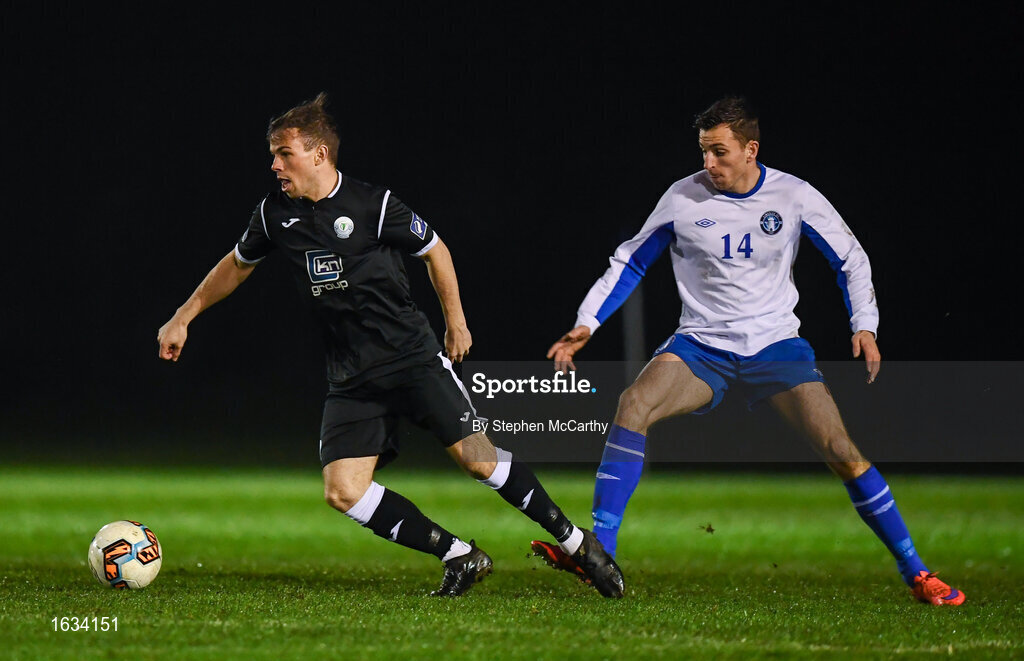 19 January 2019; Mark Coyle of Finn Harps and Conor Ellis of Limerick during a pre-season friendly match between Finn Harps and Limerick at the AUL Complex in Clonshaugh, Dublin. Photo by Stephen McCarthy/Sportsfile