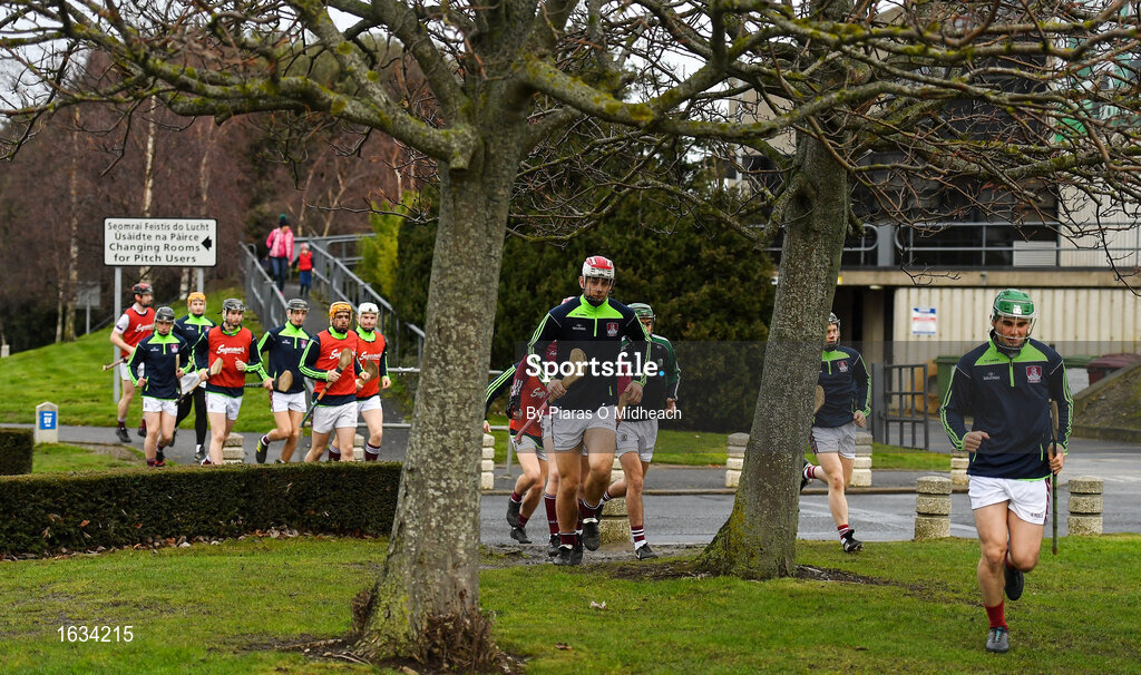 20 January 2019; NUI Galway players make their way to the pitch before the Electric Ireland Fitzgibbon Cup Round 1 match between University College Dublin and NUI Galway at Billings Park in UCD, Belfield, Dublin. Photo by Piaras Ó Mídheach/Sportsfile