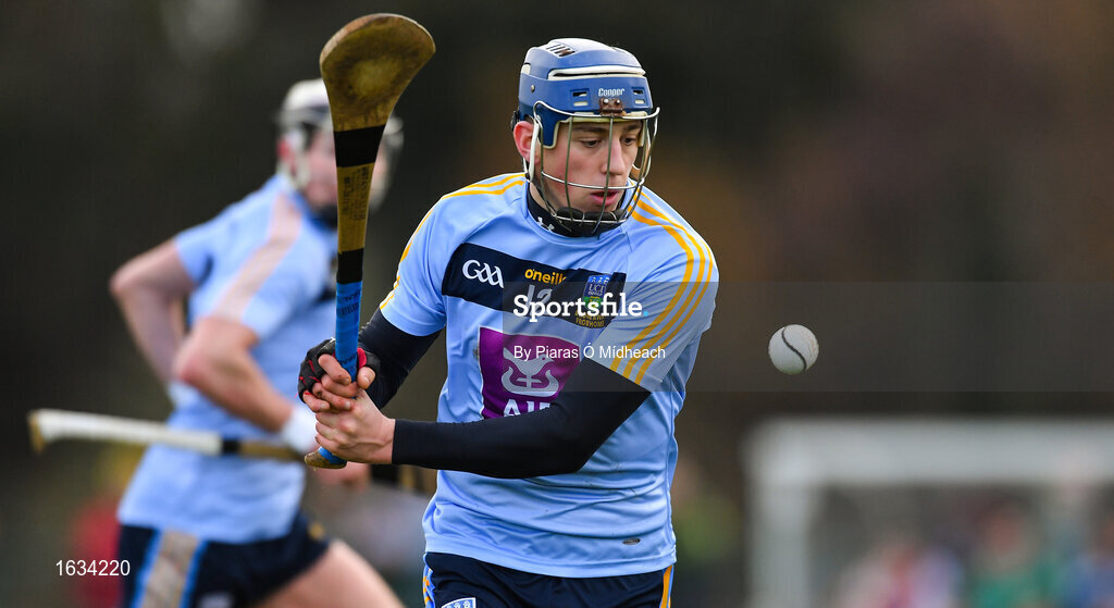 20 January 2019; Paul Crummey of UCD scores his side's first goal during the Electric Ireland Fitzgibbon Cup Round 1 match between University College Dublin and NUI Galway at Billings Park in UCD, Belfield, Dublin. Photo by Piaras Ó Mídheach/Sportsfile