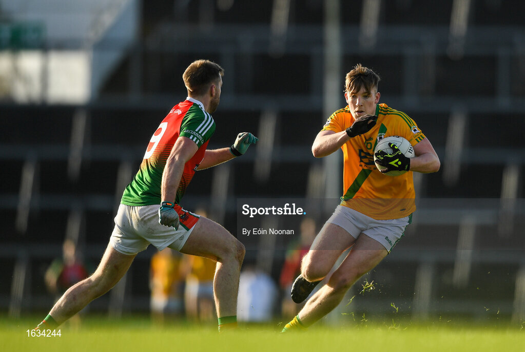 20 January 2019; Andrew Cregg of Two Mile House is tackled by Kevin Gorman of Kilcummin during the AIB GAA Football All-Ireland Intermediate Championship semi-final match between Two Mile House and Kilcummin at the Gaelic Grounds in Limerick. Photo by Eóin Noonan/Sportsfile