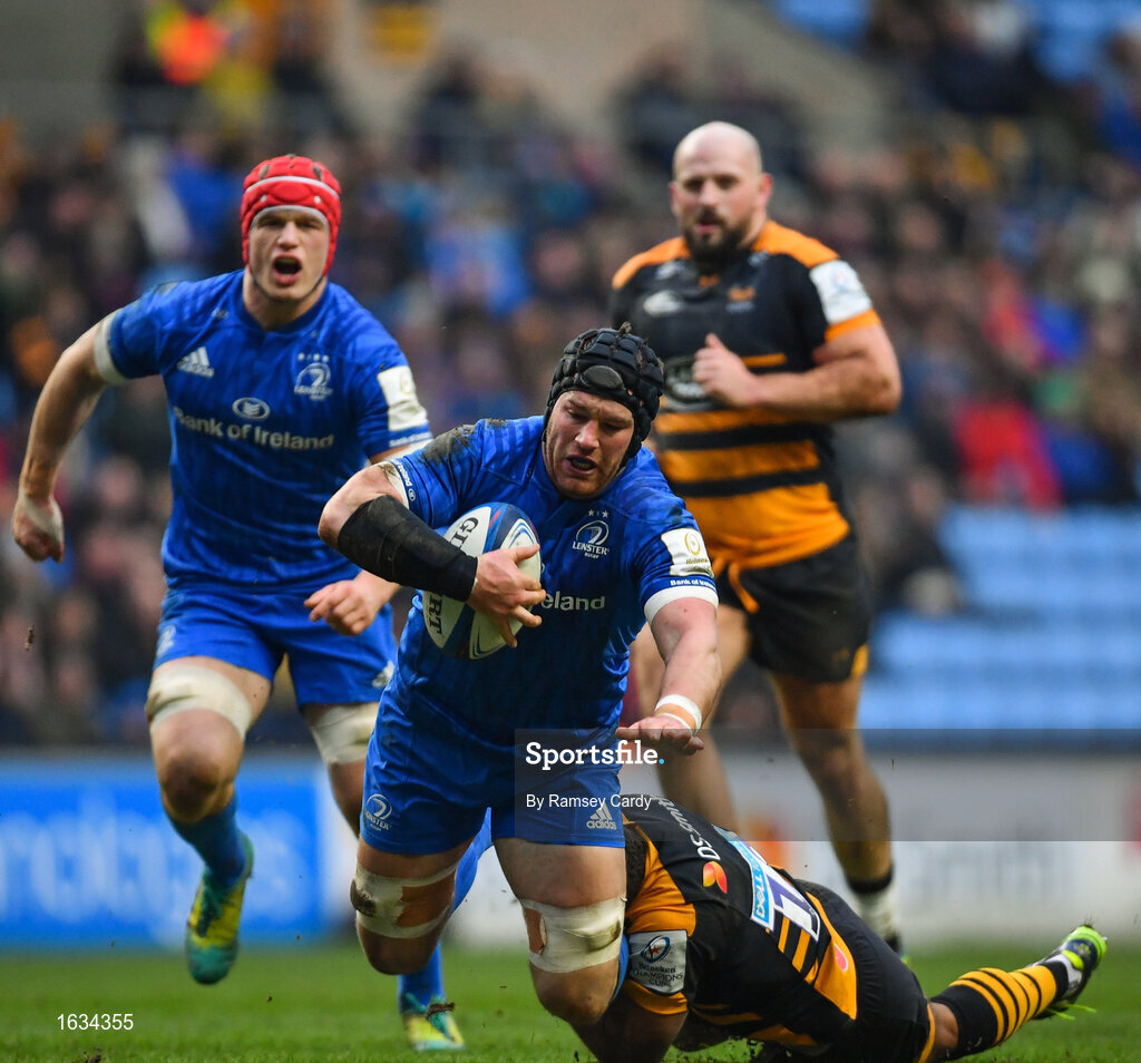 20 January 2019; Seán O'Brien of Leinster is tackled by Gaby Lovobalavu of Wasps during the Heineken Champions Cup Pool 1 Round 6 match between Wasps and Leinster at the Ricoh Arena in Coventry, England. Photo by Ramsey Cardy/Sportsfile