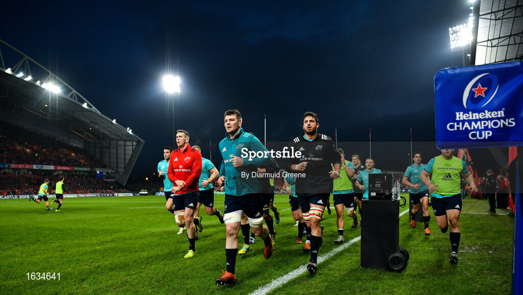19 January 2019; Munster players including Chris Farrell, Peter O'Mahony, and Jean Kleyn make their way into the dressing room prior to the Heineken Champions Cup Pool 2 Round 6 match between Munster and Exeter Chiefs at Thomond Park in Limerick. Photo by Diarmuid Greene/Sportsfile