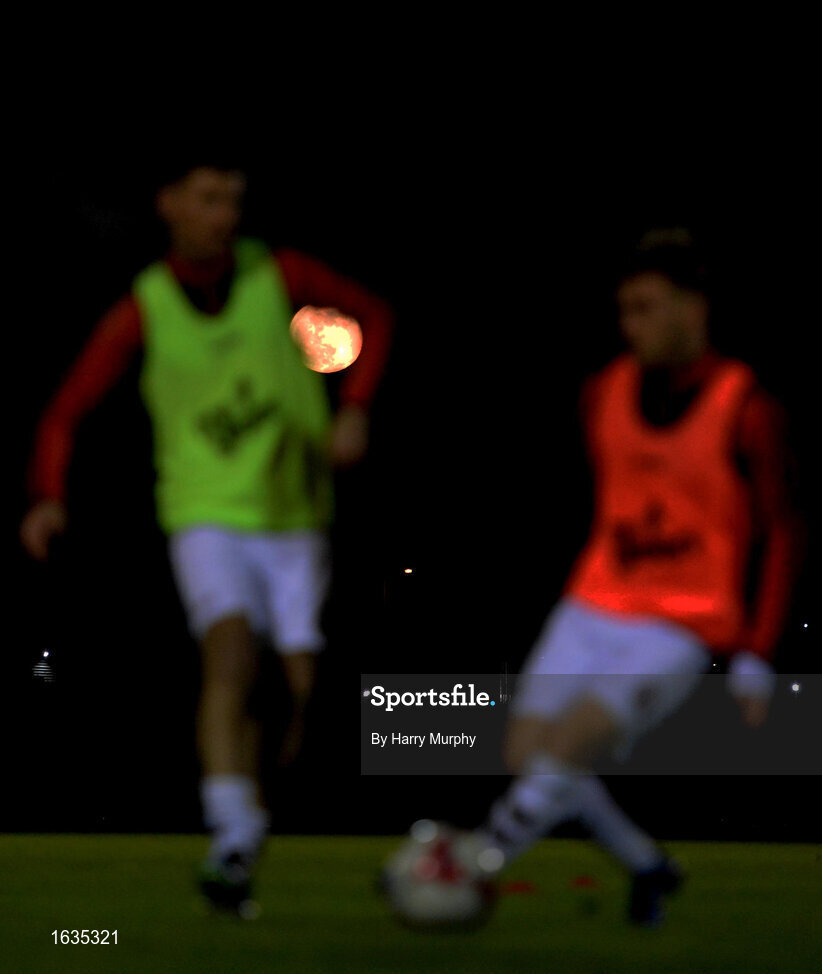 22 January 2019; The moon as seen during the warm up prior to the Pre-season Friendly match between Bohemians and Shelbourne at the FAI National Training Centre in Abbotstown, Dublin. Photo by Harry Murphy/Sportsfile