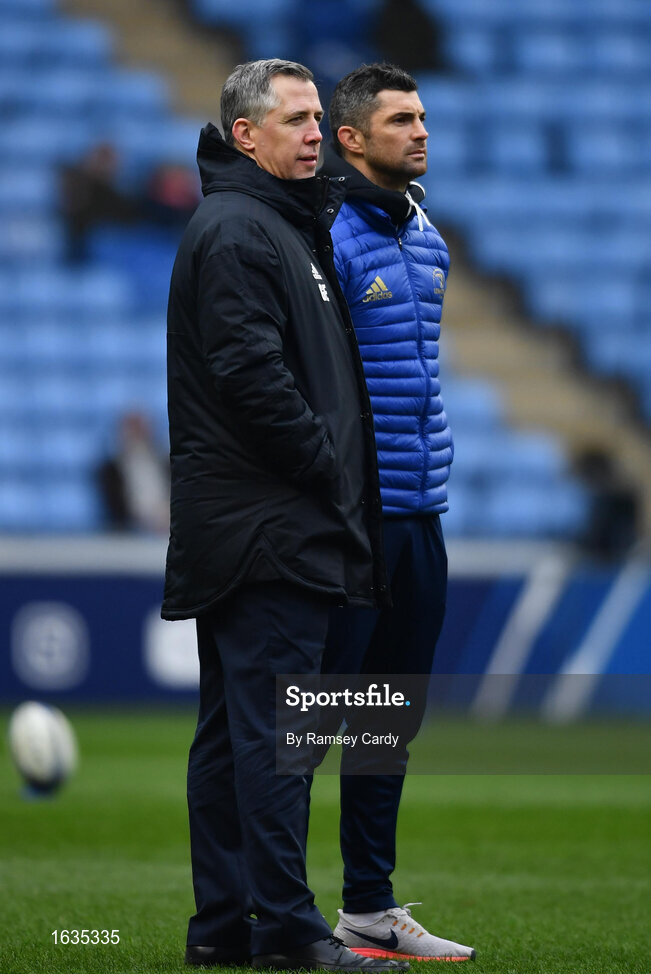 20 January 2019; Leinster Head of Rugby Operations Guy Easterby, left, and Rob Kearney ahead of the Heineken Champions Cup Pool 1 Round 6 match between Wasps and Leinster at the Ricoh Arena in Coventry, England. Photo by Ramsey Cardy/Sportsfile
