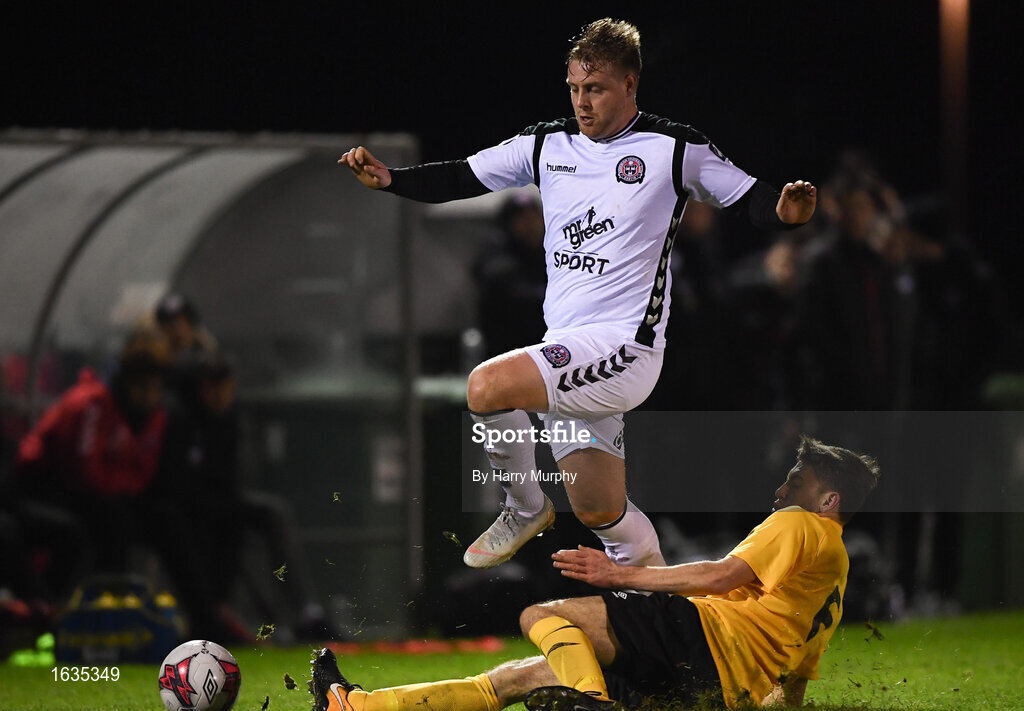 22 January 2019; Sam Byrne of Bohemians in action against Craig Giels of Shelbourne during the Pre-season Friendly match between Bohemians and Shelbourne at the FAI National Training Centre in Abbotstown, Dublin. Photo by Harry Murphy/Sportsfile