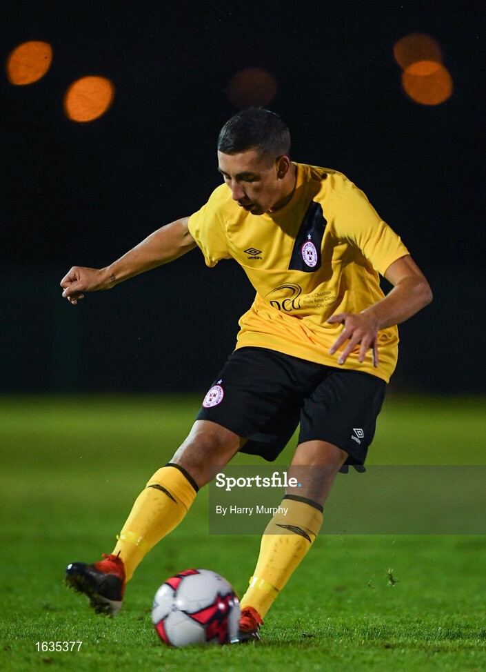 22 January 2019; Paul Zimmaling of Shelbourne during the Pre-season Friendly match between Bohemians and Shelbourne at the FAI National Training Centre in Abbotstown, Dublin. Photo by Harry Murphy/Sportsfile