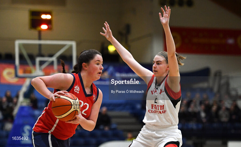 23 January 2019; Mollie Blount of St Vincent’s SS, Cork, in action against Bronagh Power Cassidy of Holy Faith Clontarf during the Subway All-Ireland Schools Cup U19 A Girls Final match between Holy Faith Clontarf and St Vincent's SS, Cork, at the National Basketball Arena in Tallaght, Dublin. Photo by Piaras Ó Mídheach/Sportsfile