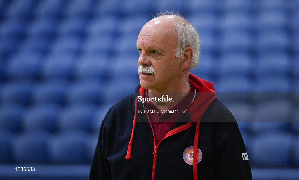 23 January 2019; St Vincent’s SS, Cork, coach Dommie Mullins during the Subway All-Ireland Schools Cup U19 A Girls Final match between Holy Faith Clontarf and St Vincent's SS, Cork, at the National Basketball Arena in Tallaght, Dublin. Photo by Piaras Ó Mídheach/Sportsfile