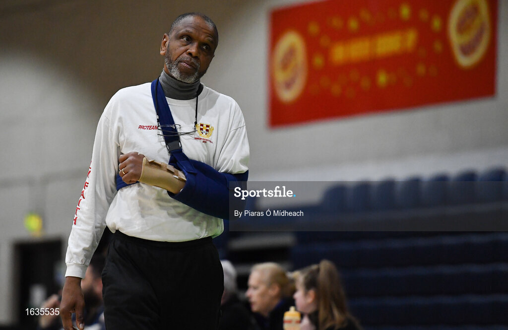 23 January 2019; Holy Faith Clontarf coach Jerome Westbrooks during the Subway All-Ireland Schools Cup U19 A Girls Final match between Holy Faith Clontarf and St Vincent's SS, Cork, at the National Basketball Arena in Tallaght, Dublin. Photo by Piaras Ó Mídheach/Sportsfile