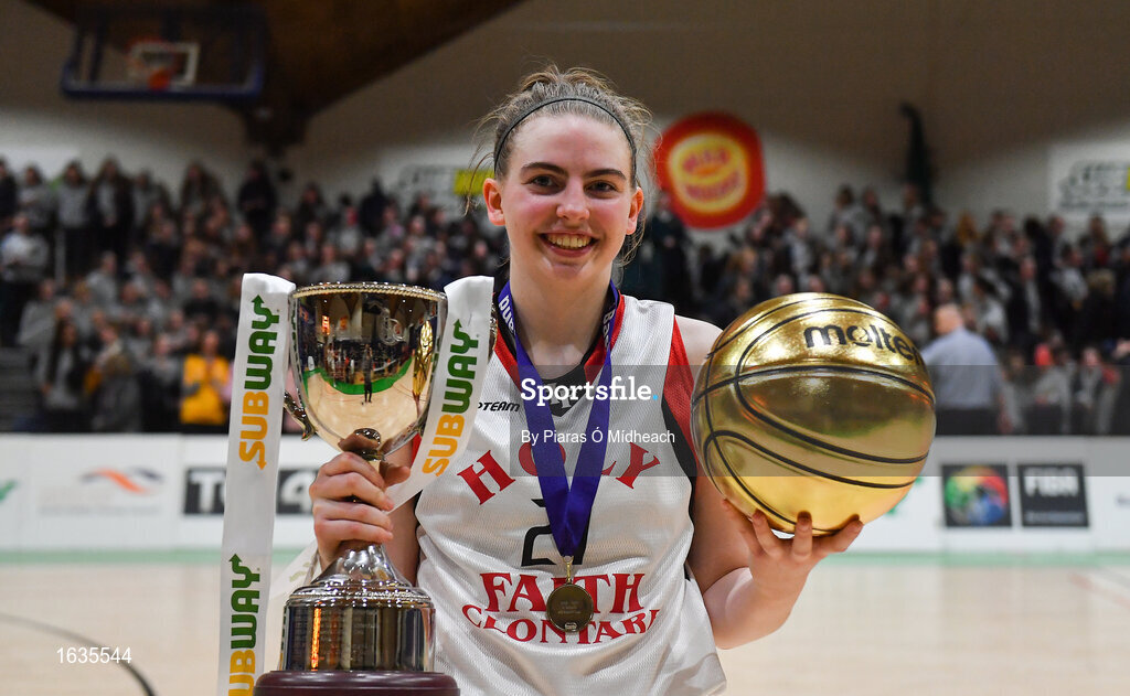 23 January 2019; Holy Faith Clontarf vice-captain and game MVP Bronagh Power Cassidy after the Subway All-Ireland Schools Cup U19 A Girls Final match between Holy Faith Clontarf and St Vincent's SS, Cork, at the National Basketball Arena in Tallaght, Dublin. Photo by Piaras Ó Mídheach/Sportsfile