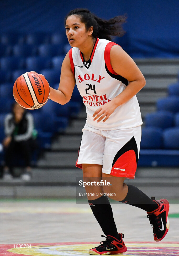 23 January 2019; Elizabeth Black of Holy Faith Clontarf during the Subway All-Ireland Schools Cup U19 A Girls Final match between Holy Faith Clontarf and St Vincent's SS, Cork, at the National Basketball Arena in Tallaght, Dublin. Photo by Piaras Ó Mídheach/Sportsfile