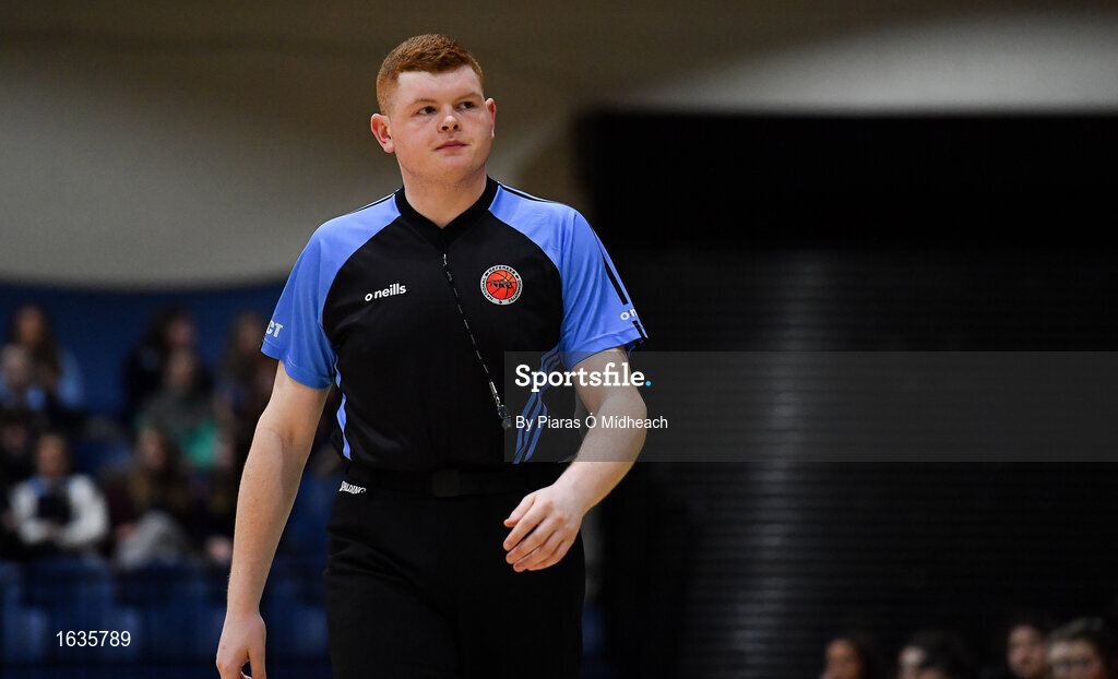 23 January 2019; Referee Mark Gilleran during the Subway All-Ireland Schools Cup U19 A Girls Final match between Holy Faith Clontarf and St Vincent's SS, Cork, at the National Basketball Arena in Tallaght, Dublin. Photo by Piaras Ó Mídheach/Sportsfile
