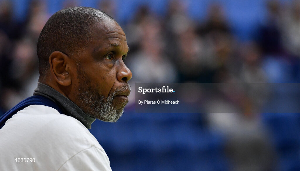 23 January 2019; Holy Faith Clontarf coach Jerome Westbrooks during the Subway All-Ireland Schools Cup U19 A Girls Final match between Holy Faith Clontarf and St Vincent's SS, Cork, at the National Basketball Arena in Tallaght, Dublin. Photo by Piaras Ó Mídheach/Sportsfile
