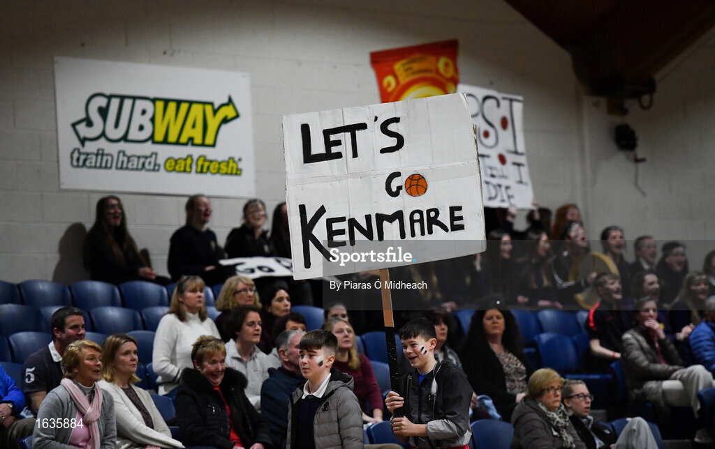 23 January 2019; Pobailscoil Inbhear Sceine Kenmare supporters during the Subway All-Ireland Schools Cup U16 A Girls Final match between Coláiste Einde and Pobailscoil Inbhear Sceine Kenmare at the National Basketball Arena in Tallaght, Dublin. Photo by Piaras Ó Mídheach/Sportsfile