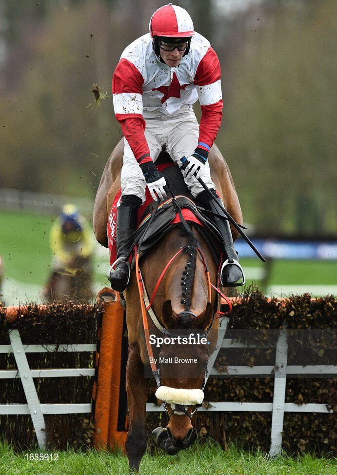 24 January 2019; The Big Dog, with David Mullins up, jump the last on their way to winning the Connolly's RED MILLS Irish EBF Auction Maiden Hurdle during Gowran Park Racing at Gowran Park Racecourse in Kilkenny. Photo by Matt Browne/Sportsfile