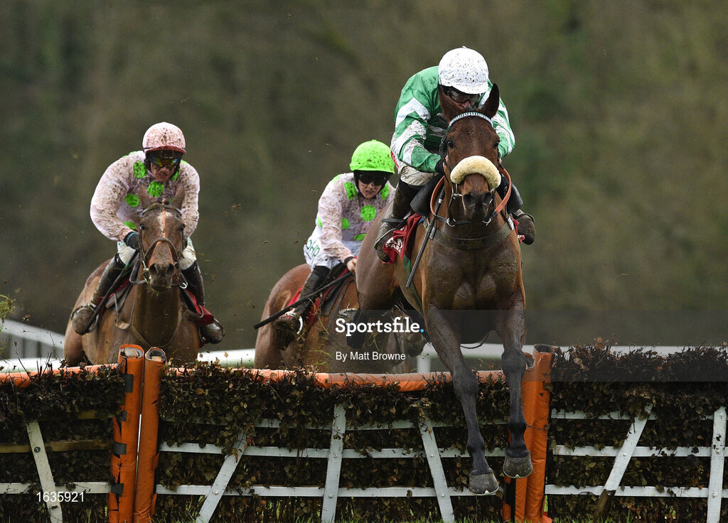 24 January 2019; Presenting Percy, with Davy Russell up, jumps the last on their way to winning the John Mulhern Galmoy Hurdle during Gowran Park Racing at Gowran Park Racecourse in Kilkenny. Photo by Matt Browne/Sportsfile