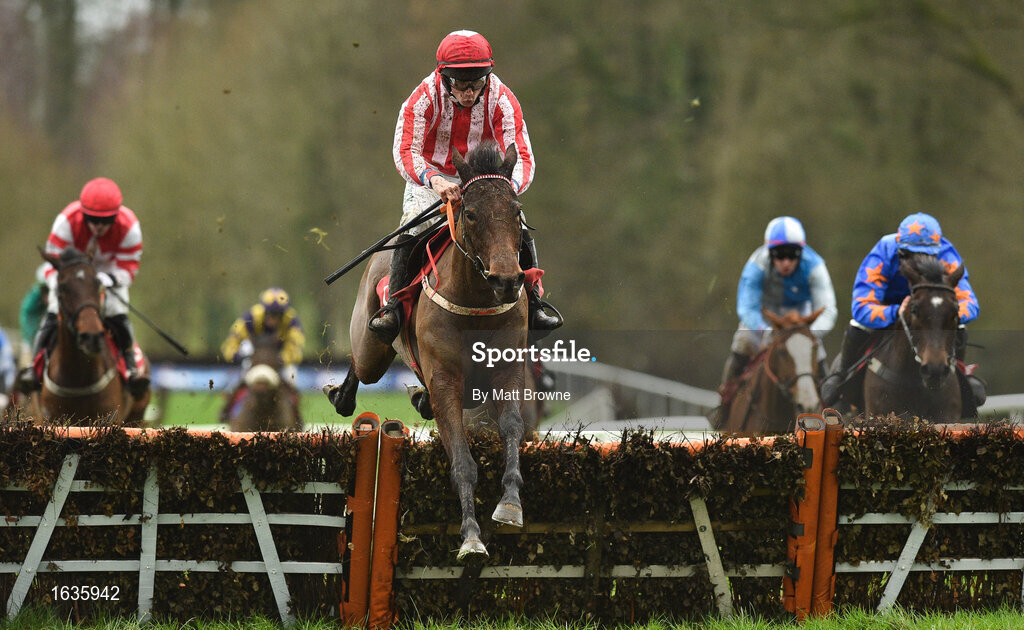 24 January 2019; Allez Kal, with Cathal Landers up, jumps the last on their way to winning the Adare Manor Opportunity Handicap Hurdle during Gowran Park Racing at Gowran Park Racecourse in Kilkenny. Photo by Matt Browne/Sportsfile