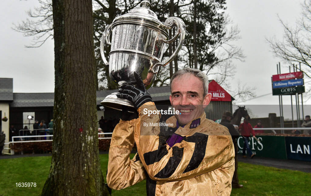 24 January 2019; Ruby Walsh with the Thyestes Handicap after winning the Goffs Thyestes Handicap Steeplechase with Invitation Only during Gowran Park Racing at Gowran Park Racecourse in Kilkenny. Photo by Matt Browne/Sportsfile