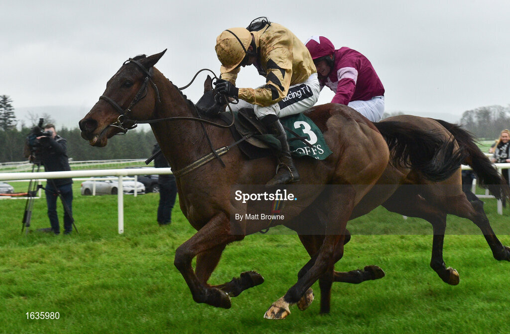 24 January 2019; Invitation Only, with Ruby Walsh up, on their way to winning the Goffs Thyestes Handicap Steeplechase with eventual second place Alpha Des Obeaux, with Rob James up, during Gowran Park Racing at Gowran Park Racecourse in Kilkenny. Photo by Matt Browne/Sportsfile
