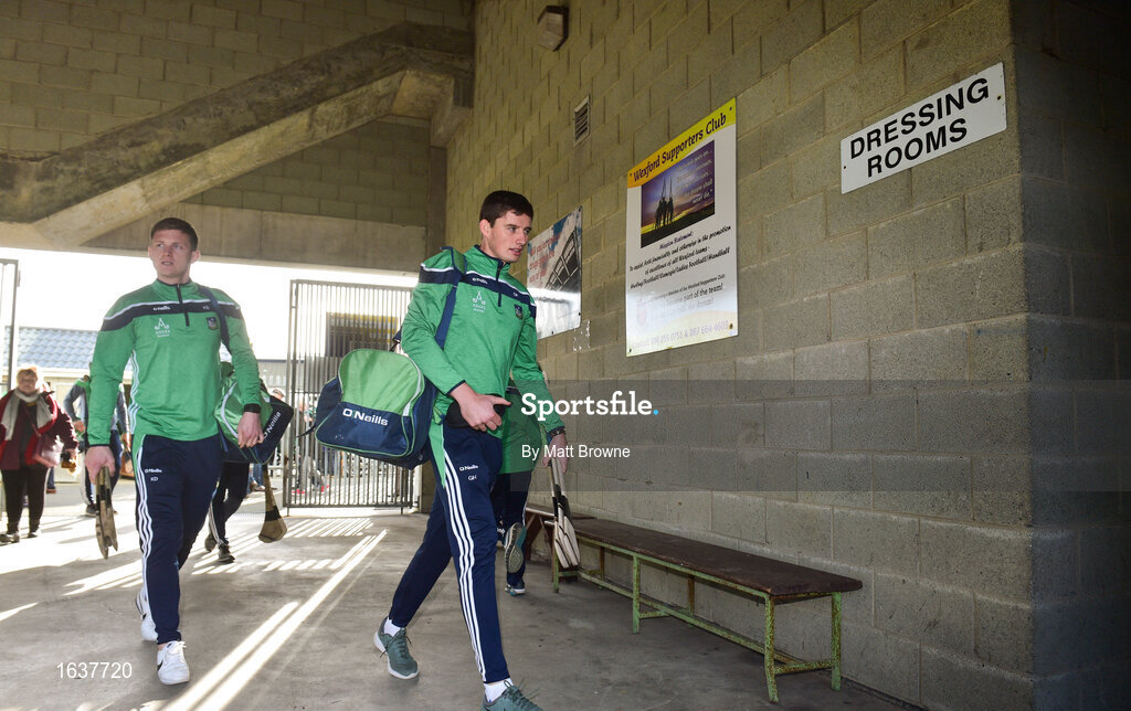 27 January 2019; Gearoid Hegarty, left, and Kevin Downes of Limerick arrive to Innovate Wexford Park before the Allianz Hurling League Division 1A Round 1 match between Wexford and Limerick at Innovate Wexford Park in Wexford. Photo by Matt Browne/Sportsfile