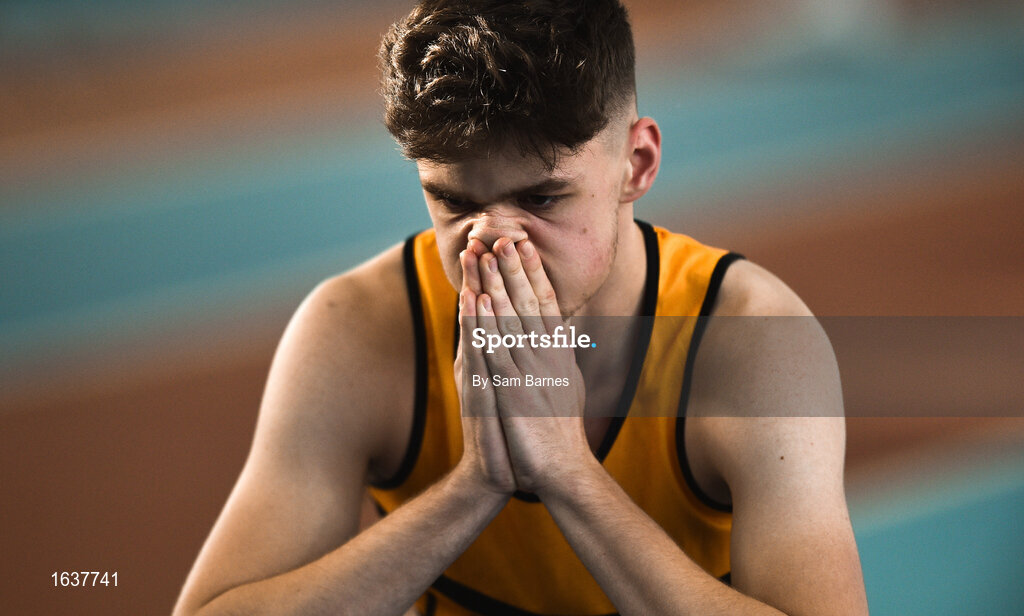 27 January 2019; Dave McInerney of Leevale AC, Co. Cork, after competing in the Junior Men 60m event during the Irish Life Health Junior and U23 Indoors at AIT International Arena in Athlone, Co. Westmeath. Photo by Sam Barnes/Sportsfile