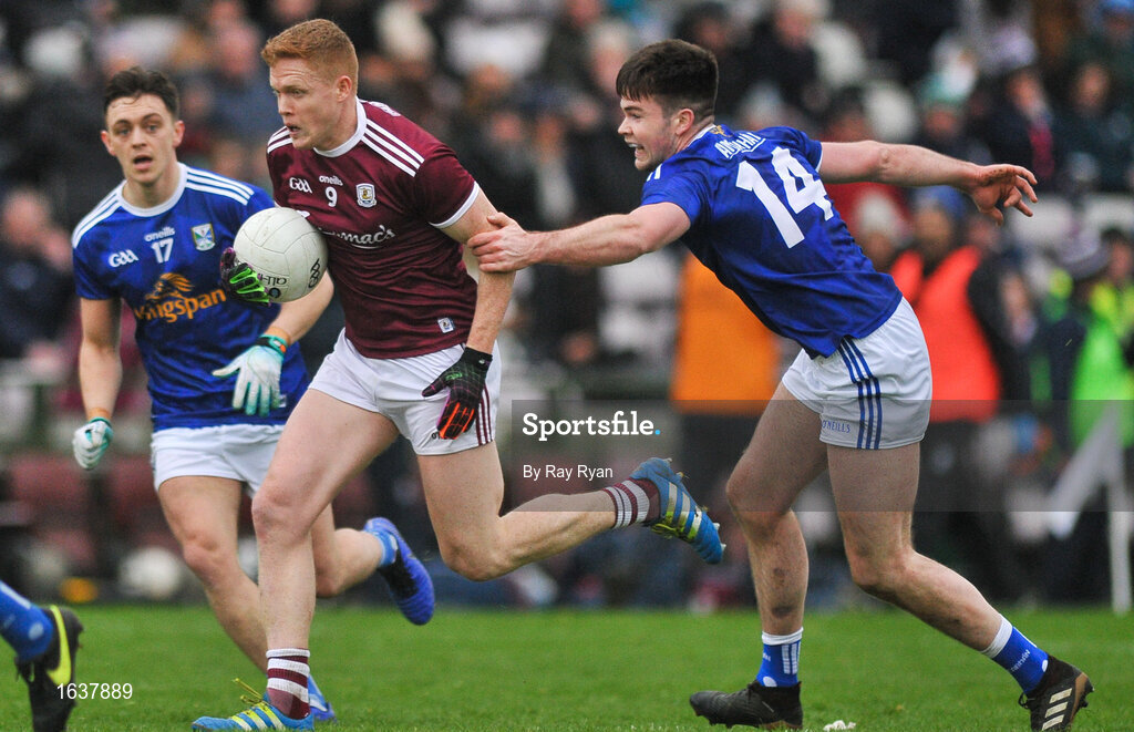 27 January 2019; Kieran Duggan of Galway in action against Thomas Galligan of Cavan during the Allianz Football League Division 1 Round 1 match between Galway and Cavan at Pearse Stadium in Galway. Photo by Ray Ryan/Sportsfile