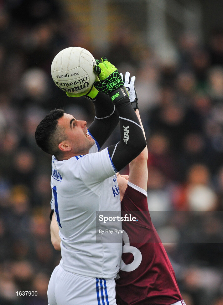 27 January 2019; Raymond Galligan of Cavan in action against Ian Burke of Galway during the Allianz Football League Division 1 Round 1 match between Galway and Cavan at Pearse Stadium in Galway. Photo by Ray Ryan/Sportsfile