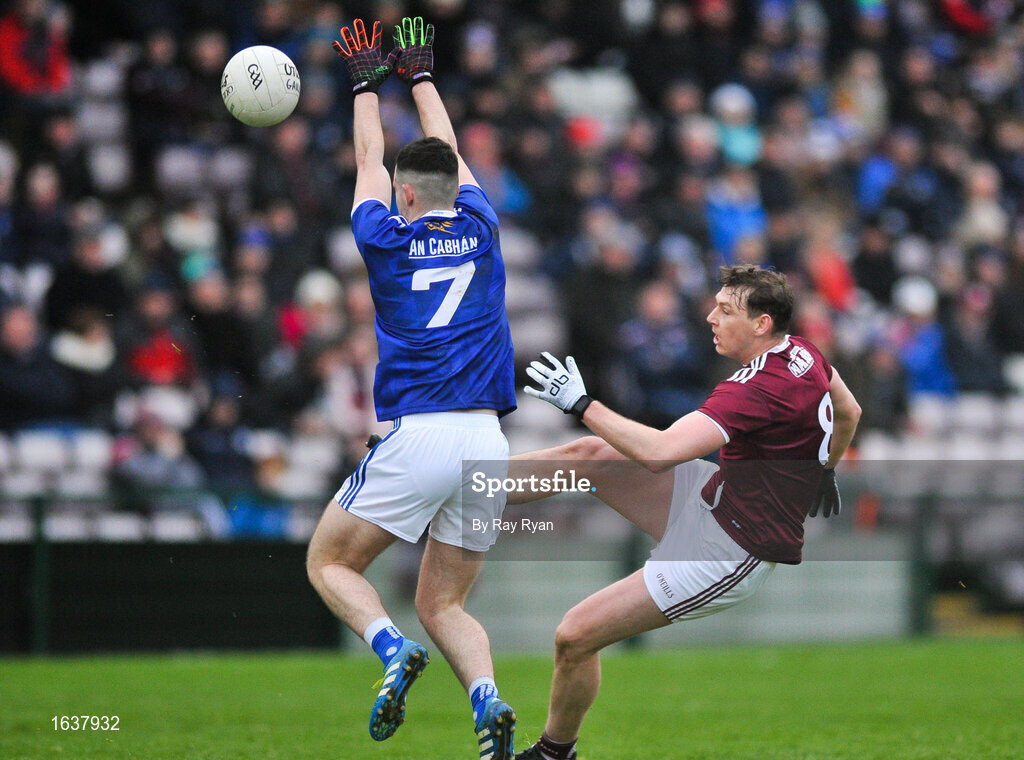 27 January 2019; Thomas Flynn of Galway in action against Conor Rehill of Cavan during the Allianz Football League Division 1 Round 1 match between Galway and Cavan at Pearse Stadium in Galway. Photo by Ray Ryan/Sportsfile
