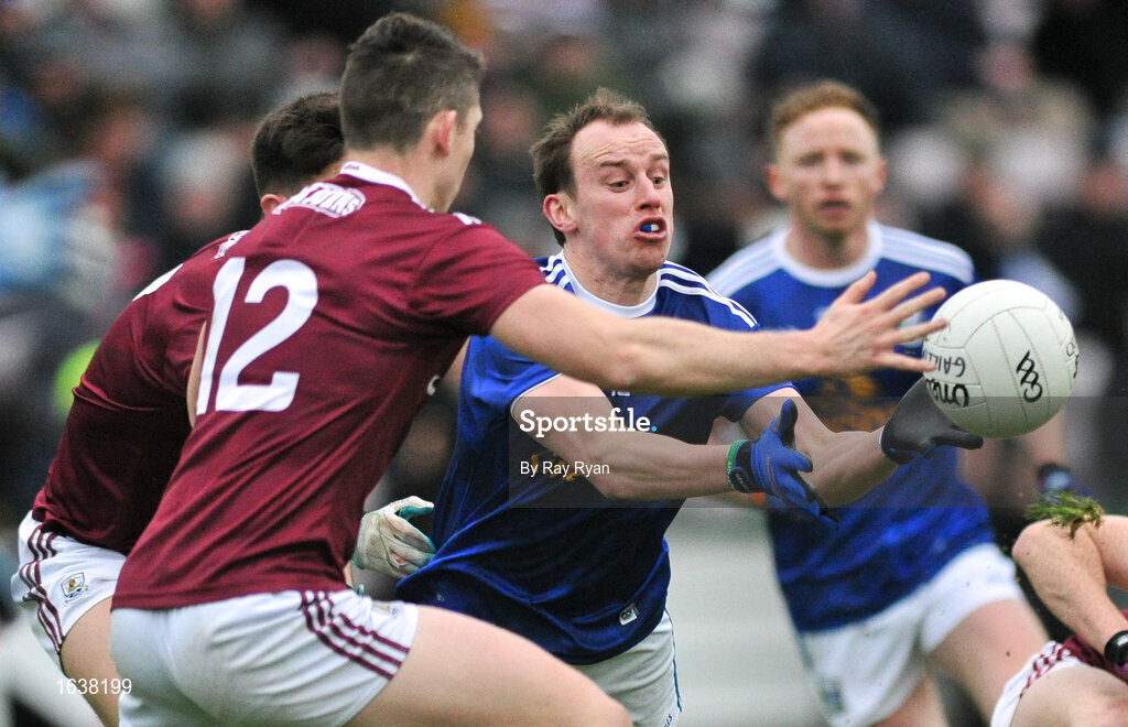 27 January 2019; Martin Reilly of Cavan in action against Johnny Heaney of Galway during the Allianz Football League Division 1 Round 1 match between Galway and Cavan at Pearse Stadium in Galway. Photo by Ray Ryan/Sportsfile