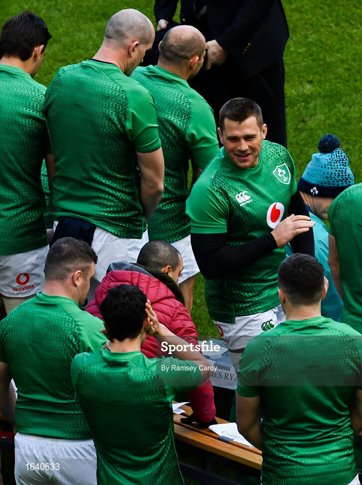 1 February 2019; CJ Stander shares a joke with Joey Carbery during the Ireland Rugby captain's run at the Aviva Stadium in Dublin. Photo by Ramsey Cardy/Sportsfile
