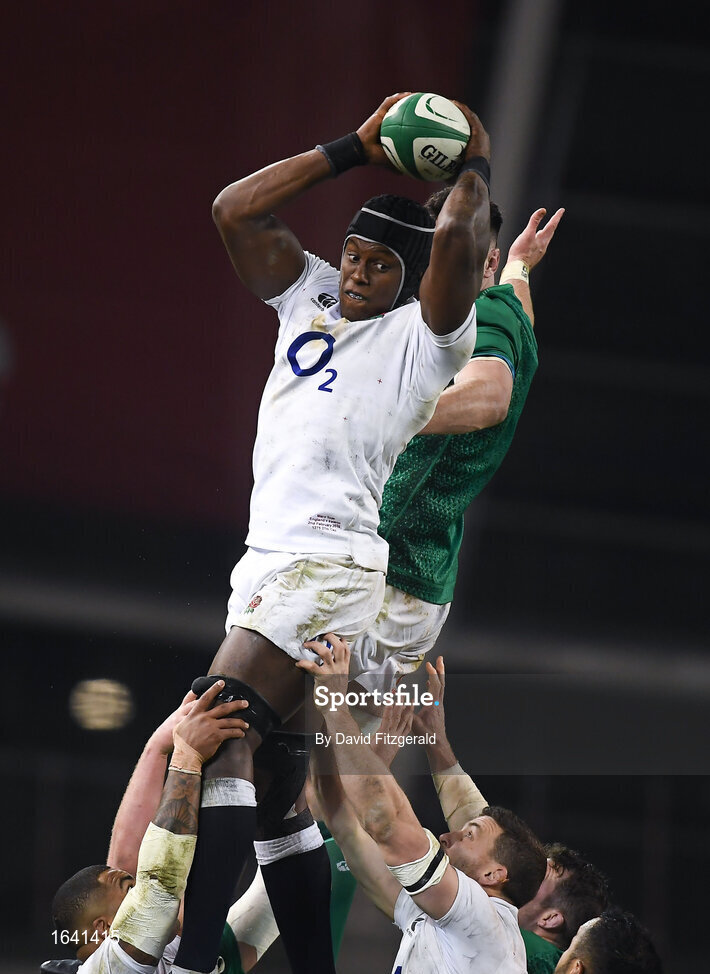 2 February 2019; Maro Itoje of England wins possession in a lineout ahead of James Ryan of Ireland during the Guinness Six Nations Rugby Championship match between Ireland and England in the Aviva Stadium in Dublin. Photo by David Fitzgerald/Sportsfile