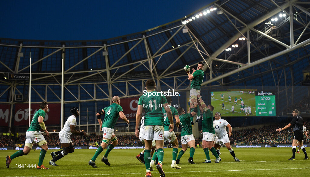 2 February 2019; James Ryan of Ireland wins possession in a lineout during the Guinness Six Nations Rugby Championship match between Ireland and England in the Aviva Stadium in Dublin. Photo by David Fitzgerald/Sportsfile