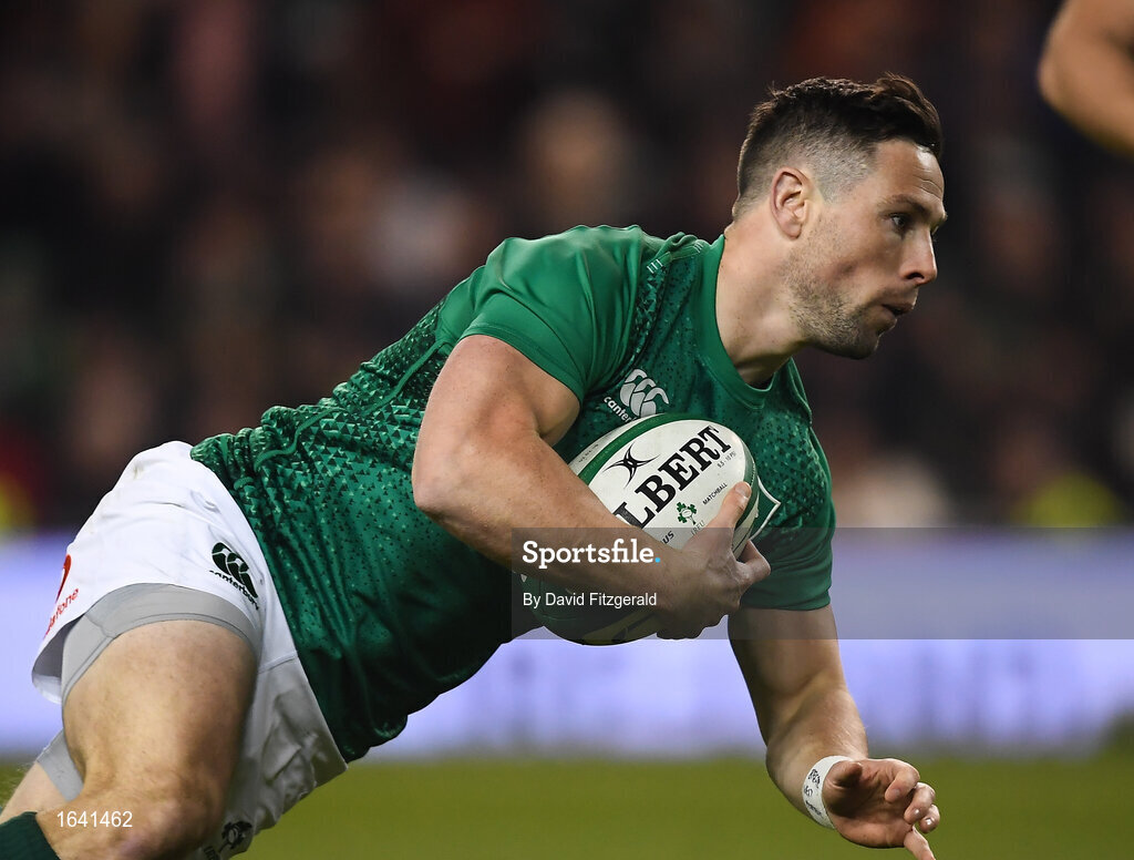 2 February 2019; John Cooney of Ireland goes over to score his side's second try during the Guinness Six Nations Rugby Championship match between Ireland and England in the Aviva Stadium in Dublin. Photo by David Fitzgerald/Sportsfile