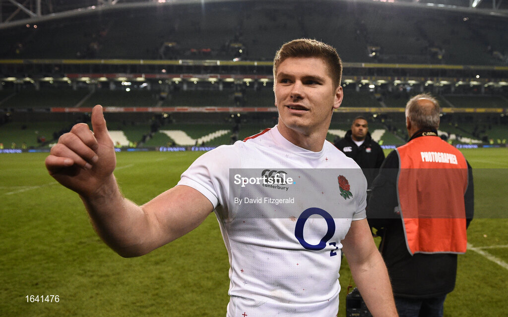 2 February 2019; Owen Farrell of England celebrates following the Guinness Six Nations Rugby Championship match between Ireland and England in the Aviva Stadium in Dublin. Photo by David Fitzgerald/Sportsfile