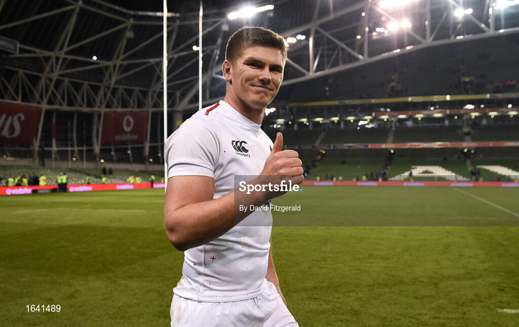 2 February 2019; Owen Farrell of England celebrates following the Guinness Six Nations Rugby Championship match between Ireland and England in the Aviva Stadium in Dublin. Photo by David Fitzgerald/Sportsfile