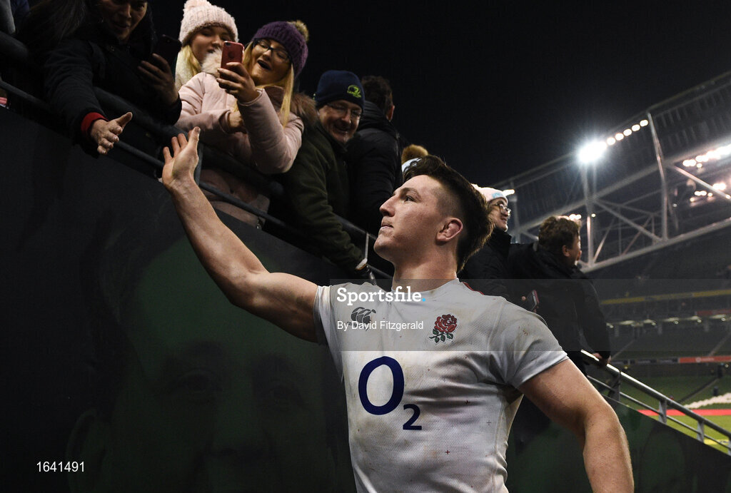 2 February 2019; Tom Curry of England acknowleges supporters following the Guinness Six Nations Rugby Championship match between Ireland and England in the Aviva Stadium in Dublin. Photo by David Fitzgerald/Sportsfile