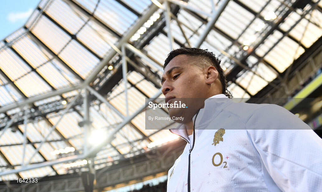 2 February 2019; Nathan Hughes of England ahead of the Guinness Six Nations Rugby Championship match between Ireland and England in the Aviva Stadium in Dublin. Photo by Ramsey Cardy/Sportsfile