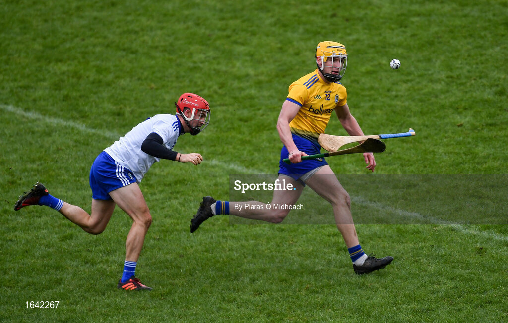 3 February 2019; Padraig Kelly of Roscommon in action against Conor McKenna of Monaghan during the Allianz Hurling League Division 3A Round 2 match between Roscommon and Monaghan at Dr Hyde Park in Roscommon. Photo by Piaras Ó Mídheach/Sportsfile