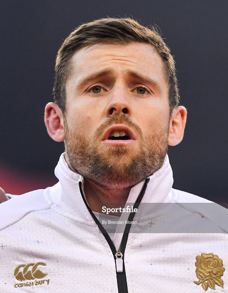 2 February 2019; Elliot Daly of England prior to the Guinness Six Nations Rugby Championship match between Ireland and England in the Aviva Stadium in Dublin. Photo by Brendan Moran/Sportsfile