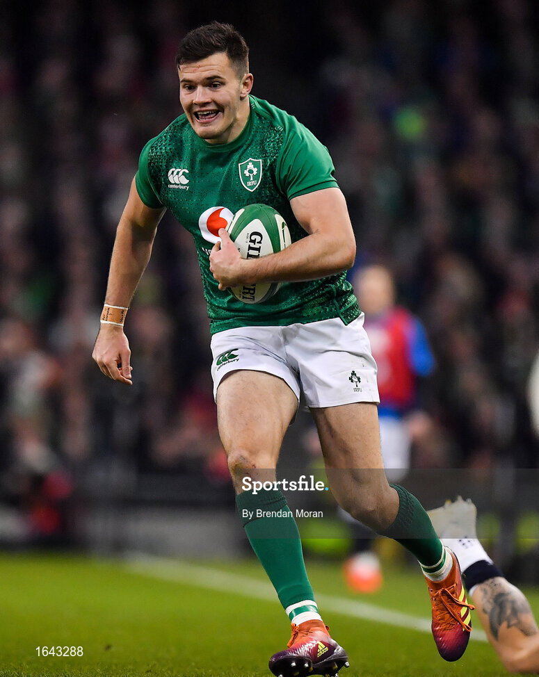 2 February 2019; Jacob Stockdale of Ireland during the Guinness Six Nations Rugby Championship match between Ireland and England in the Aviva Stadium in Dublin. Photo by Brendan Moran/Sportsfile