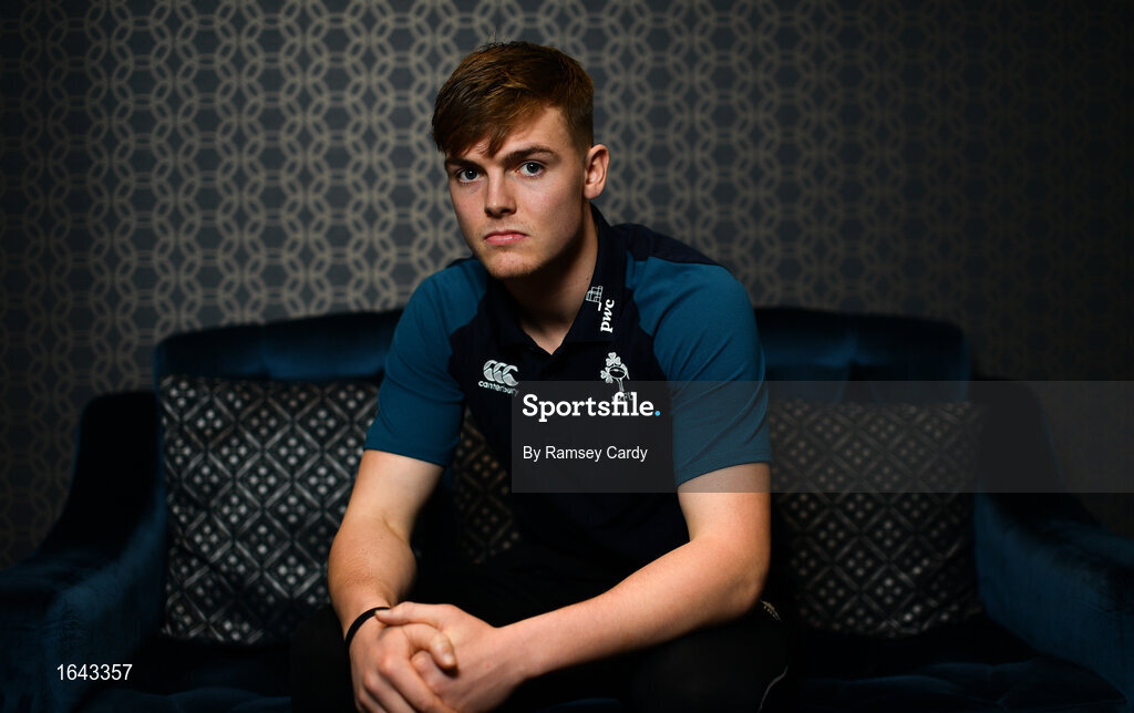 4 February 2019; Jake Flannery poses for a portrait ahead of an Ireland Under 20 Rugby press conference at the Sandymount Hotel in Dublin. Photo by Ramsey Cardy/Sportsfile