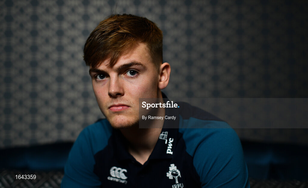 4 February 2019; Jake Flannery poses for a portrait ahead of an Ireland Under 20 Rugby press conference at the Sandymount Hotel in Dublin. Photo by Ramsey Cardy/Sportsfile