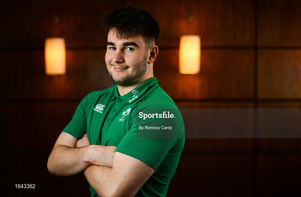 4 February 2019; John Hodnett poses for a portrait ahead of an Ireland Under 20 Rugby press conference at the Sandymount Hotel in Dublin. Photo by Ramsey Cardy/Sportsfile