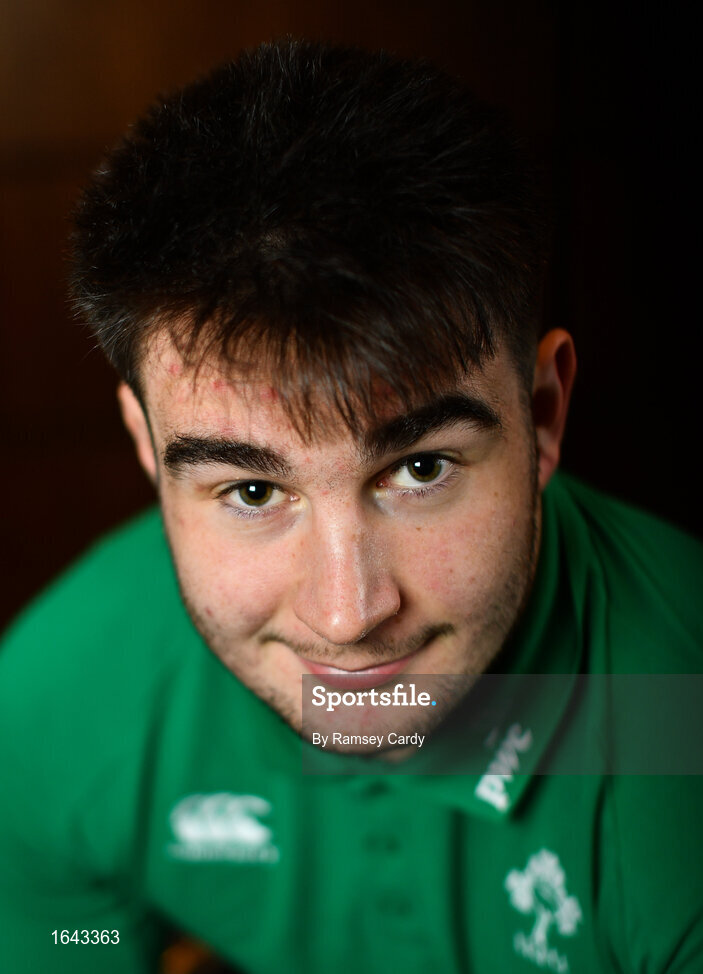 4 February 2019; John Hodnett poses for a portrait ahead of an Ireland Under 20 Rugby press conference at the Sandymount Hotel in Dublin. Photo by Ramsey Cardy/Sportsfile