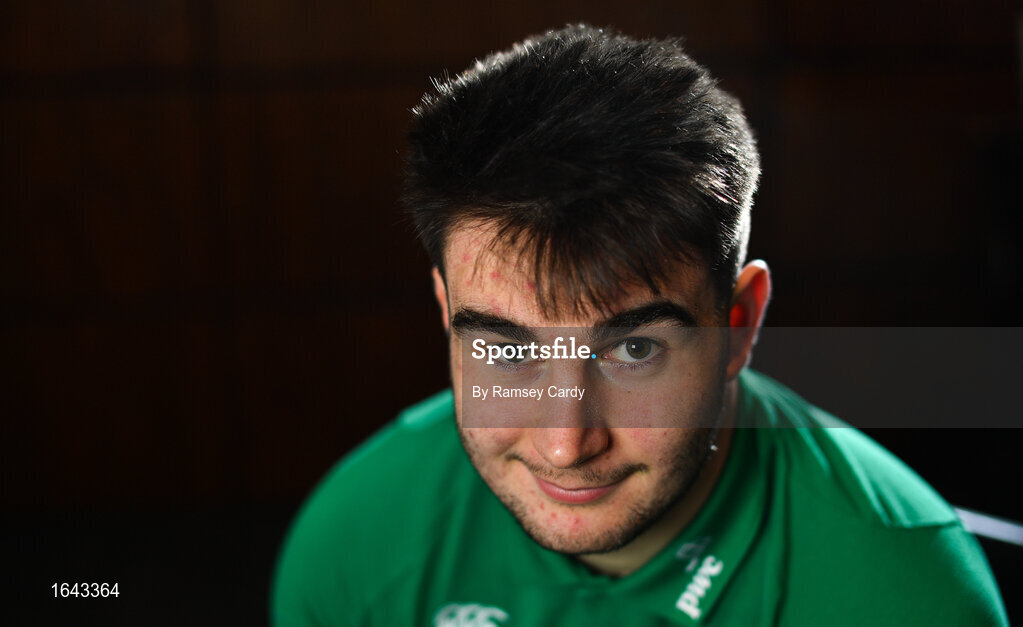 4 February 2019; John Hodnett poses for a portrait ahead of an Ireland Under 20 Rugby press conference at the Sandymount Hotel in Dublin. Photo by Ramsey Cardy/Sportsfile